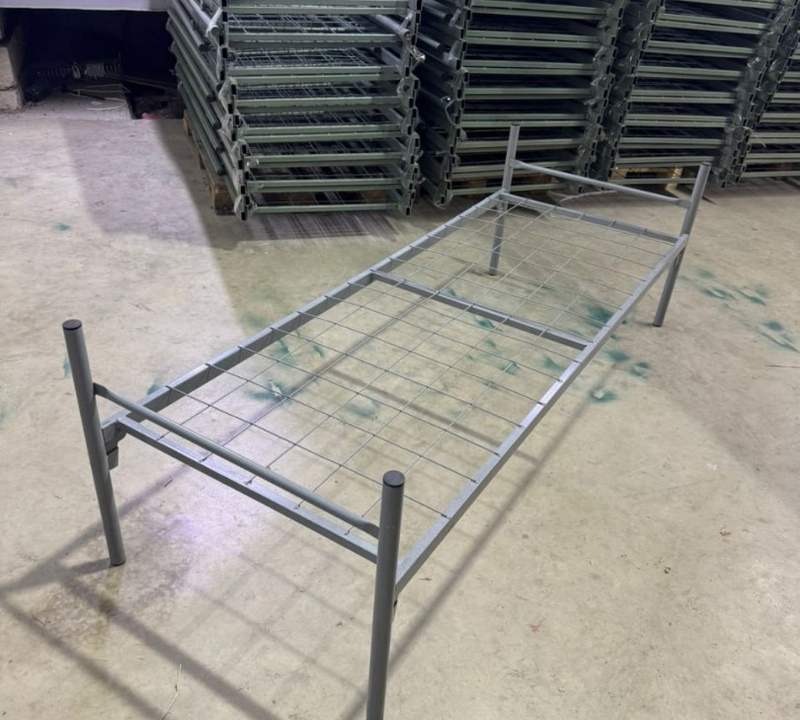 Кровать металлическая одноярусная , цвет серый , н образная спинка , 100х100 клетка , 1 усиление