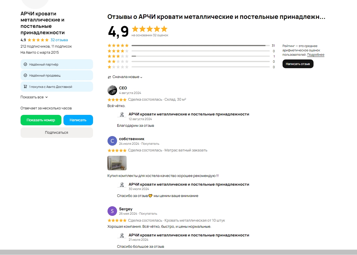 На этой странице собраны реальные отзывы клиентов о работе компании "АрчиИндустрия" - производителя и поставщика металлической мебели, каркасных кроватей, мебели для хостелов, рабочих общежитий и вахтовых городков. Мы ценим обратную связь и гордимся качеством продукции и уровнем сервиса.